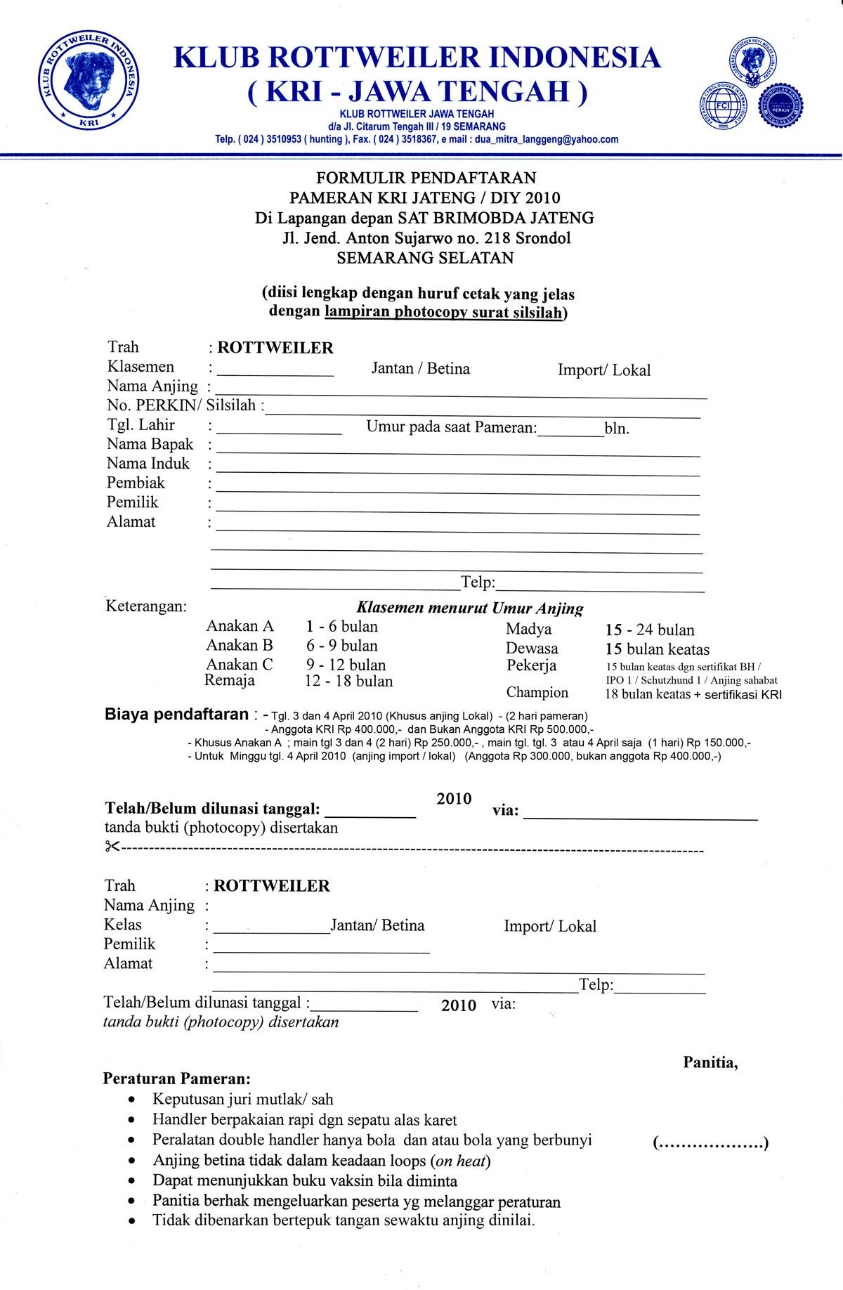 KRI wilayah Jogjakarta & konsulat Semarang akan mengadakan pameran anjing trah Rottweiler pada hari Sabtu & Minggu 3 & 4 April 2010 di Lapangan SAT BRIMOPDA Semarang.