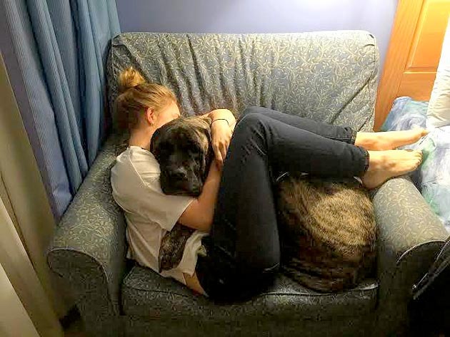 Anjing dapat mendeteksi kesedihan pada manusia dan sering mencoba untuk membuat pemiliknya bahagia dengan memulai memeluk atau tidur didekat pemiliknya (Cuddling).
