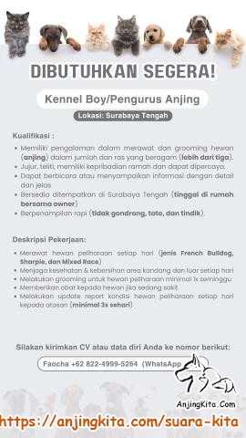 Halo! Saat ini saya sedang mencari "Kennel Boy" untuk penempatan di Surabaya Tengah.