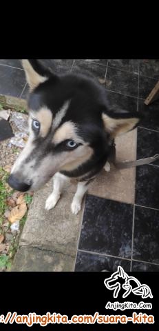 Anjing hilang kawasan Cijantung per tanggal 10 September 2020, Husky hitam putih, blue eyes. Di kuping ada tato ID.
