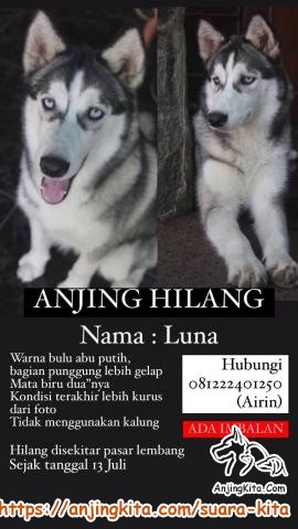 Hilang sejak 13 Juni 2021 di daerah lembang, bandung. Mata biru keduanya, sangat ramah, menengok bila dipanggil nama (LUNA), keadaan terakhir kurus dan bulu rontok karna baru melahirkan. Hubungi 081222401250 (airin)