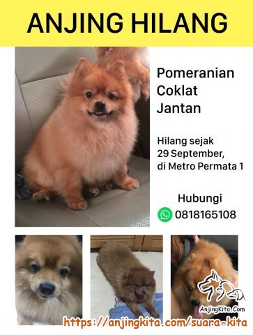 Anjing Pom Coklat Hilang Di Karang Tengah, Tangerang