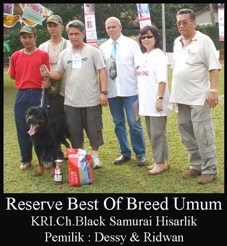 Peraih Rottweiler Jantan Indonesia Terbaik di peringkat pertama diduduki bersama 2 ekor Rottweiler yakni Pit Vom Bonzistar milik Eko Prijono Semarang & Musa vom Bonzistar milik Edi Limbono Bali. Peraih Rottweiler Betina Indonesia Terbaik diraih oleh Fuksa Jr Von Himalaya milik Husen Lumanta bandung