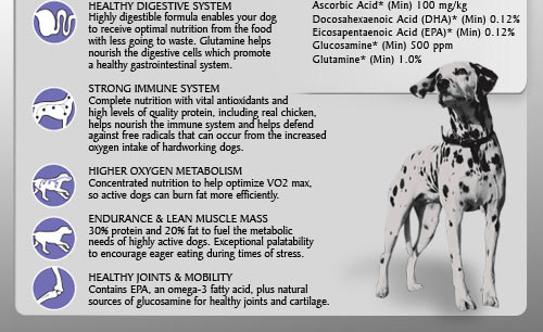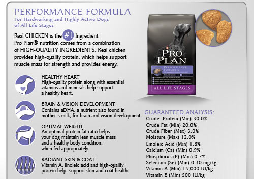 PROPLAN® Dry Performance Formula is specially formulated for endurance and lean muscle mass of hard-working and highly active dogs, contains proper nutrients to meet the unique metabolic needs.