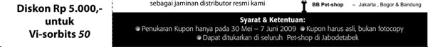 Bagi "dog-owner", dapat kupon potongan harga di harian KOMPAS, 30 Mei 2009, yang dapat ditukarkan di seluruh pet-shop di JABODETABEK untuk setiap pembelian VI-SORBITS 50 & VI-SORBITS 200.